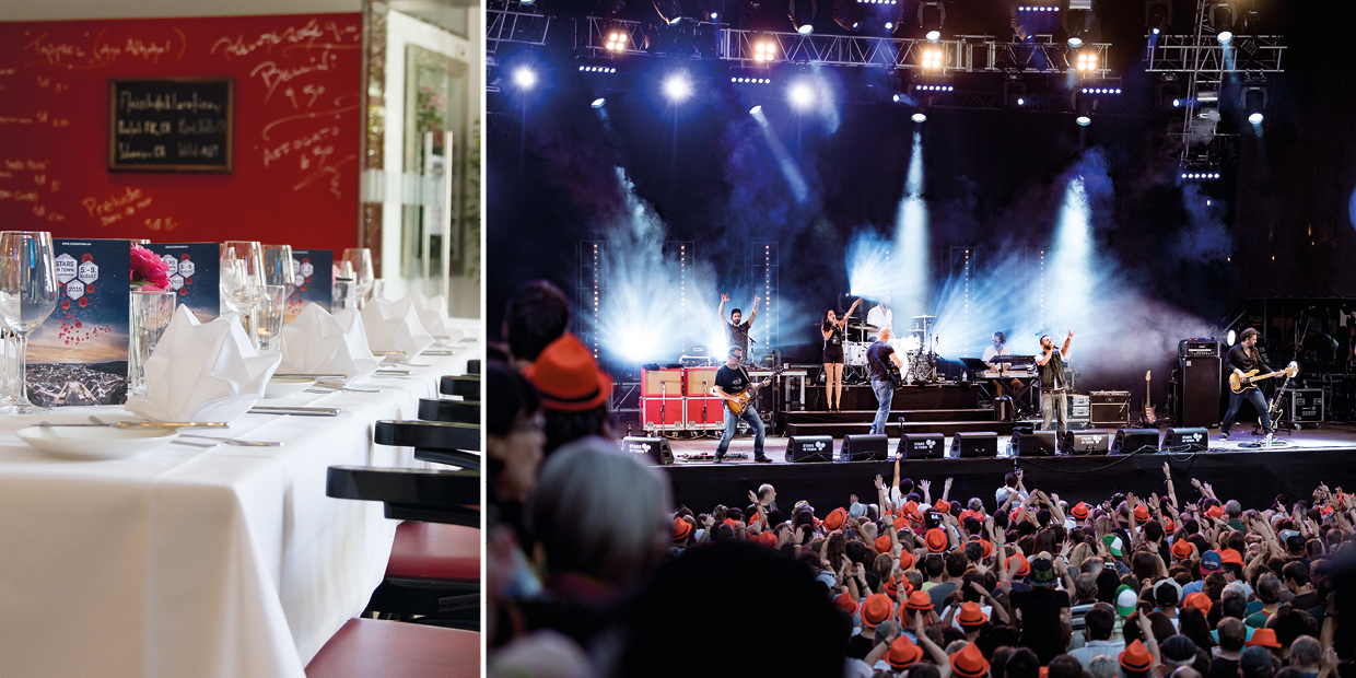 Festival-Menu serviert im Restaurant und Konzertgenuss im Public-Bereich.