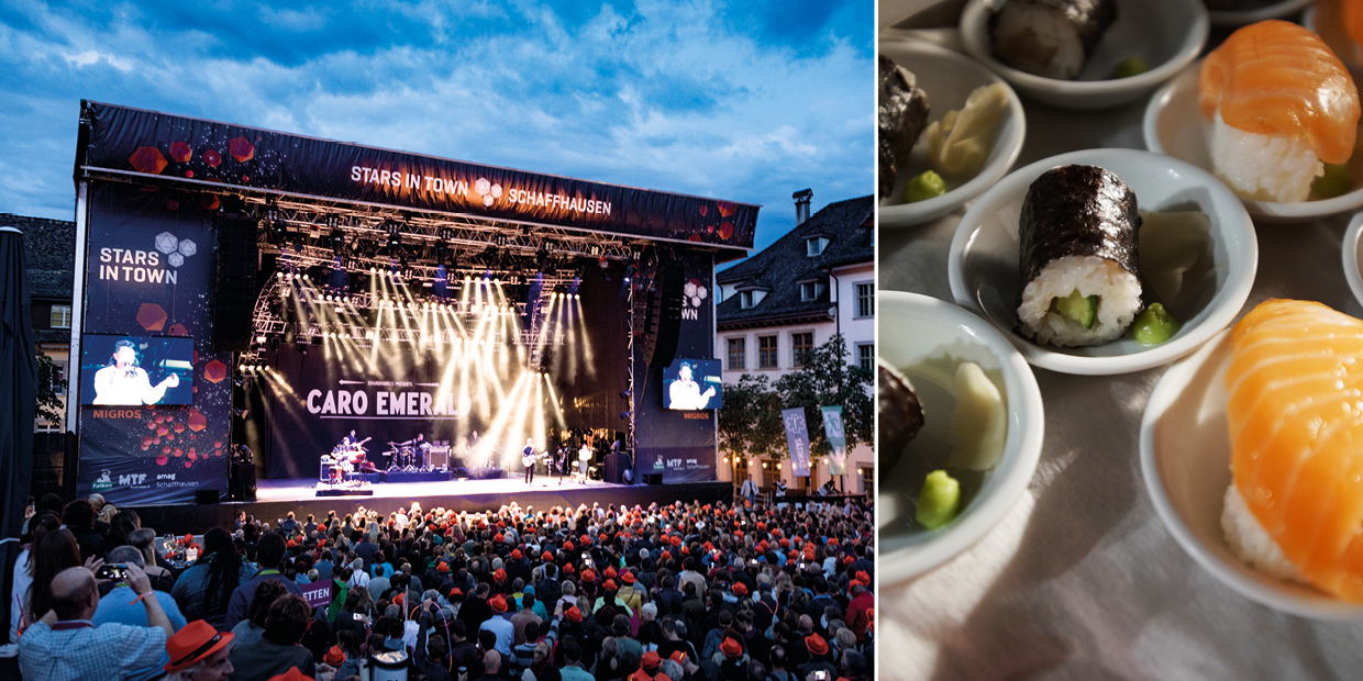 Geniessen Sie mit Ihren Geschäftskunden, Mitarbeitern, Freunden oder Bekannten einen unvergesslichen Festivalabend. In der exklusiven „Schaffhauser Stube“ mit liebevoll restaurierten Barocken Wandtäfer aus dem 18. Jahrhundert sowie der Rokoko Stuckdecke sind Sie mittendrin und doch alleine. Von da aus geniessen Sie einen exklusive Sicht auf die Bühne. Zudem erhalten Sie Zutritt zur Hospitality-Plattform mit bester Sicht auf die Bühne, gediegene Bars, ein attraktives Drei-Gang-Menü, alle Getränke inklusive.