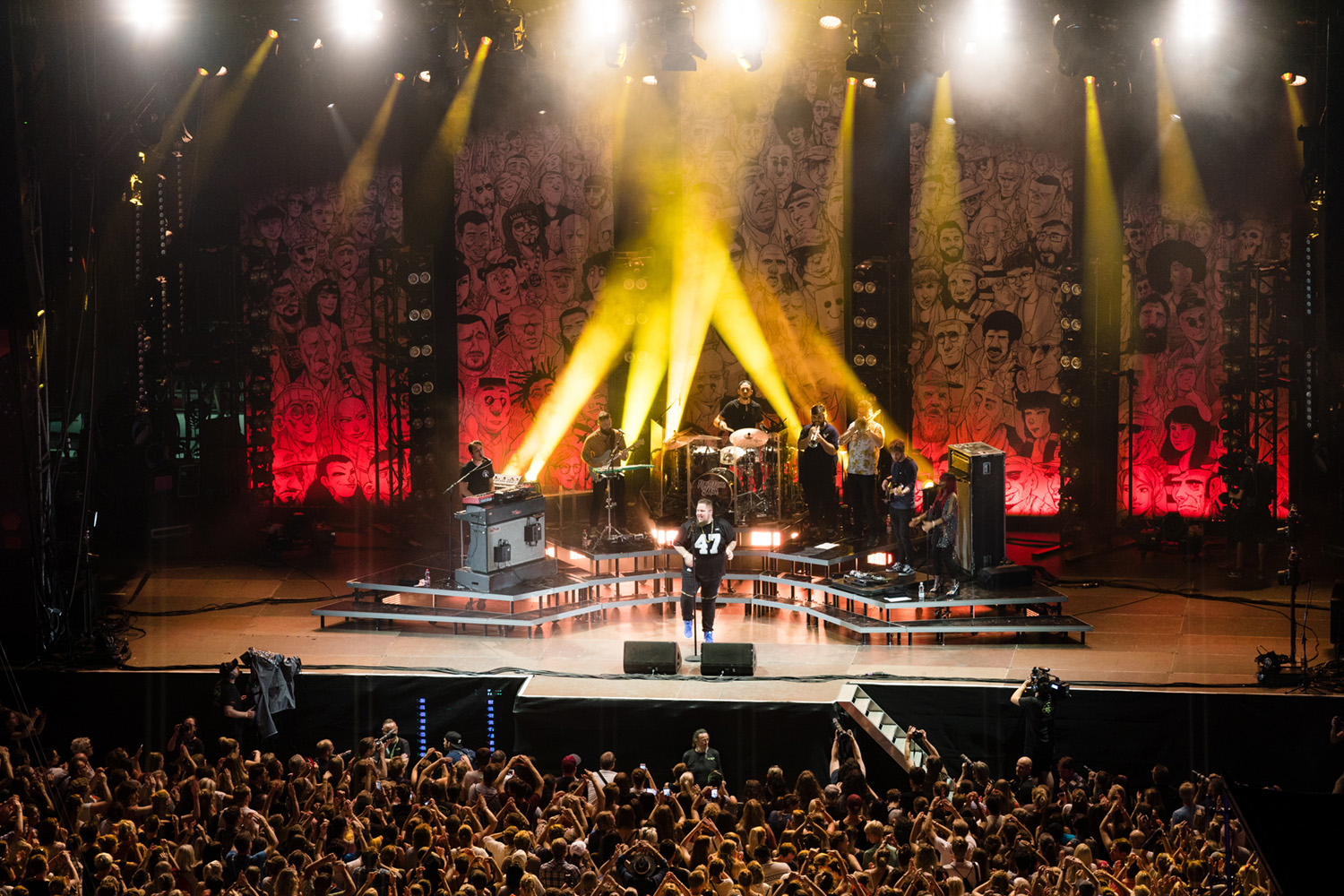Rory Graham, besser bekannt als Rag’n’Bone Man, fällt auf. Er ist ein Hüne und bringt auch einige Kilos auf die Wage. Dessen ist er sich bestens bewusst. Als er am Dienstag den Rheinfall besuchte und trotz Höhenangst von der Brücke in den Rhein sprang, hatte er die Herzen der Schaffhauser bereits in der Tasche. Als er dann auf die Frage: Bist du ein guter Schwimmer? antwortete ich bin ziemlich gut… für einen fetten Typen, wurde er definitiv unser Held. Irgendwoher muss die Stimmgewalt ja auch herkommen. Diese sorgte beim ersten Ton für Gänsehaut beim «Stars in Town»-Publikum. Auch seine Rap-Vergangenheit liess der Soul-Sänger immer wieder durchblicken. Unterstützt von einer Bläser-Formation arrangierte Rag’n’Bone Man seine Hits teilweise komplett neu. Skin beispielsweise wurde in einer Unplugged-Version auf die Bühne gebracht, bevor der Song zu voller Stärke Fahrt aufnahm. Auch beim Überhit Human überraschte der Sänger mit einer Rap-Einlage. Die gefühlvolle Performance stand im starken Kontrast zu den harten Metal-Gitarren des gestrigen Abends. Mit seiner sympathischen und authentischen Art spielte sich der Sänger direkt in die Herzen der Schaffhauser.