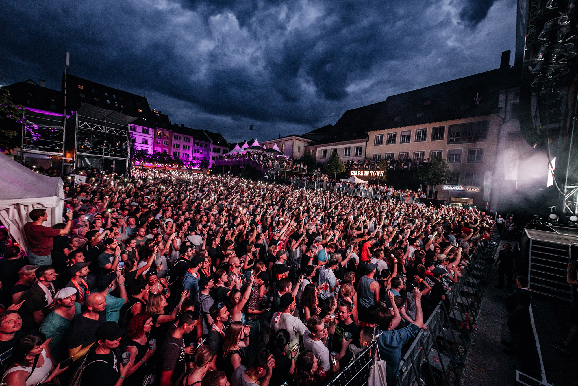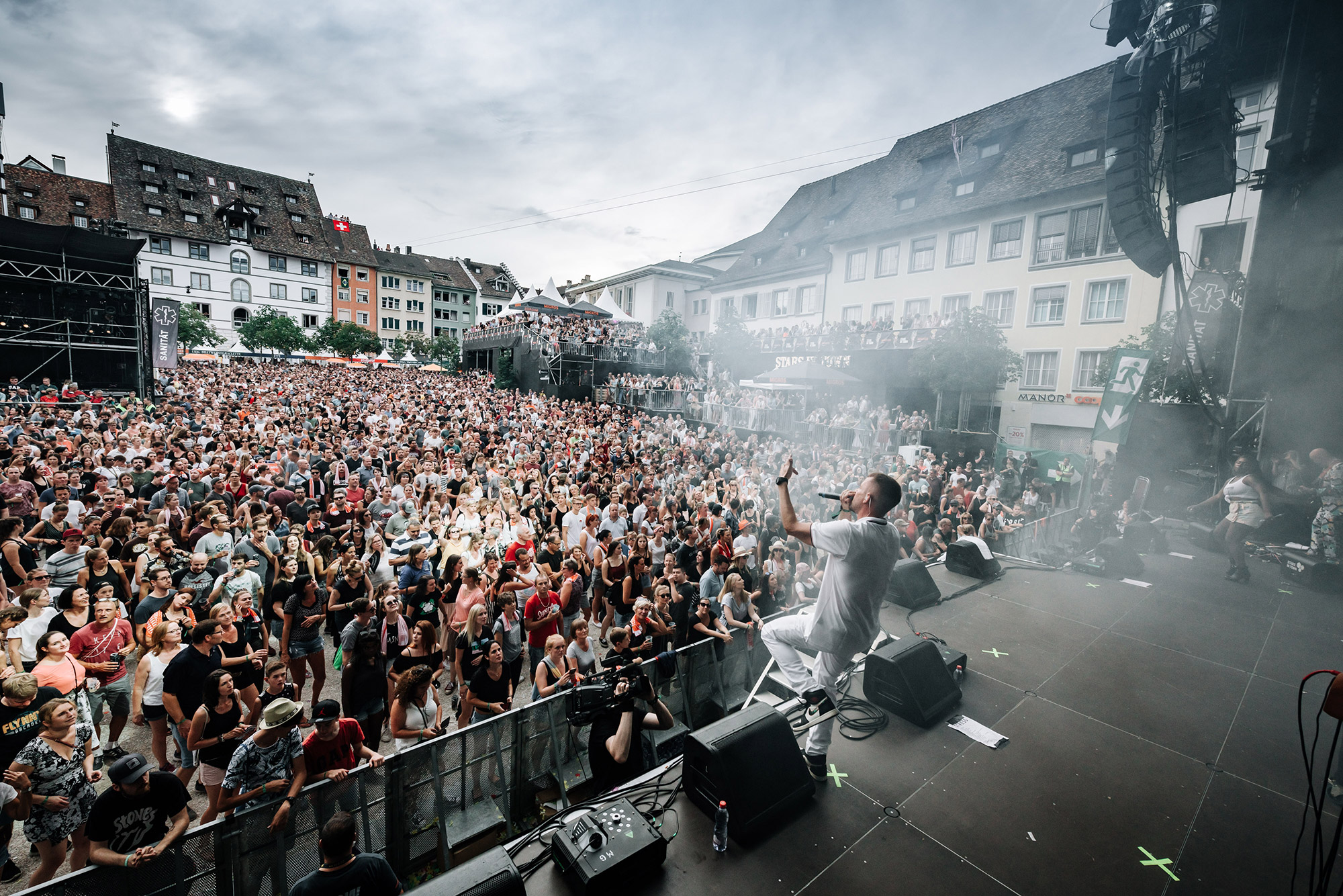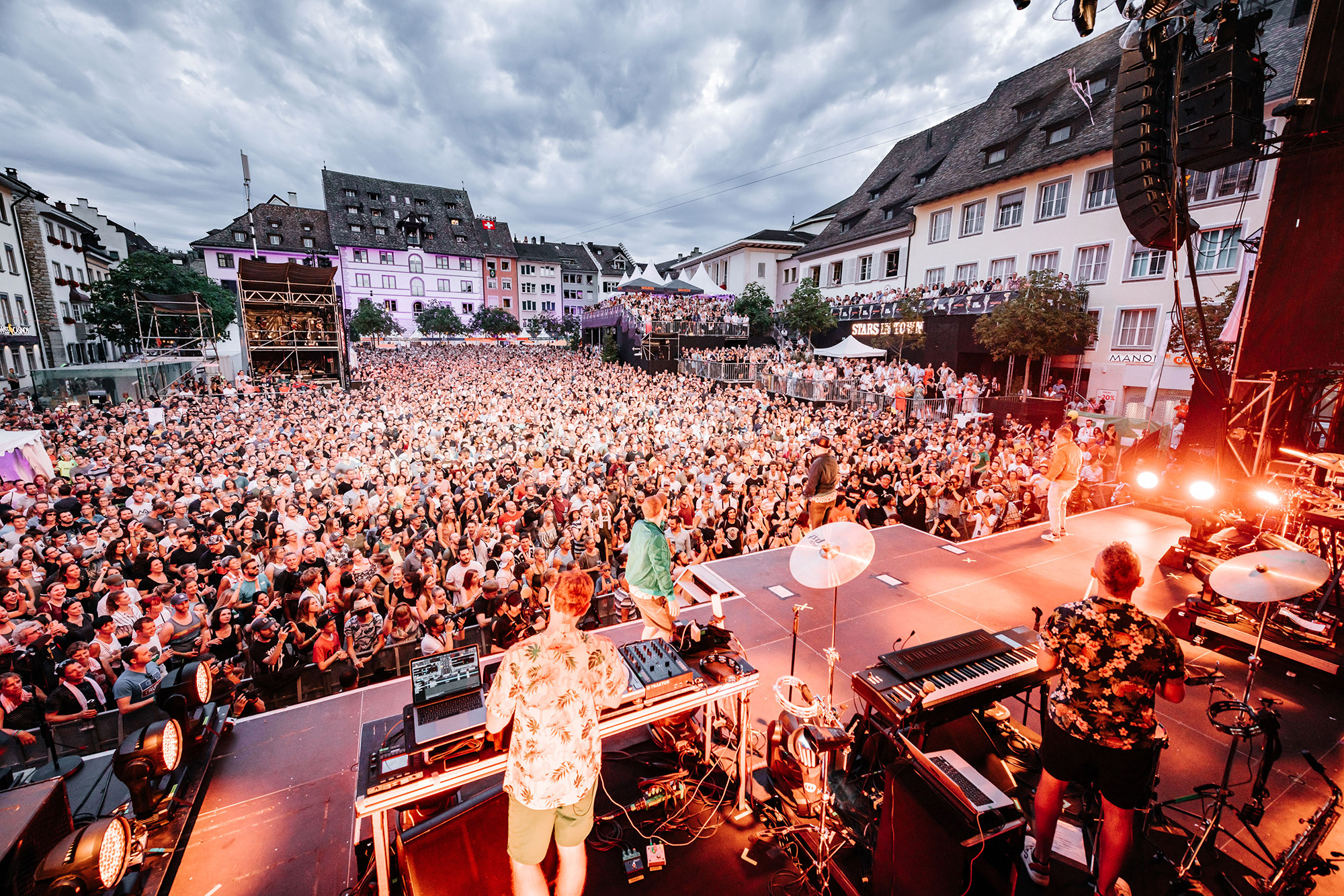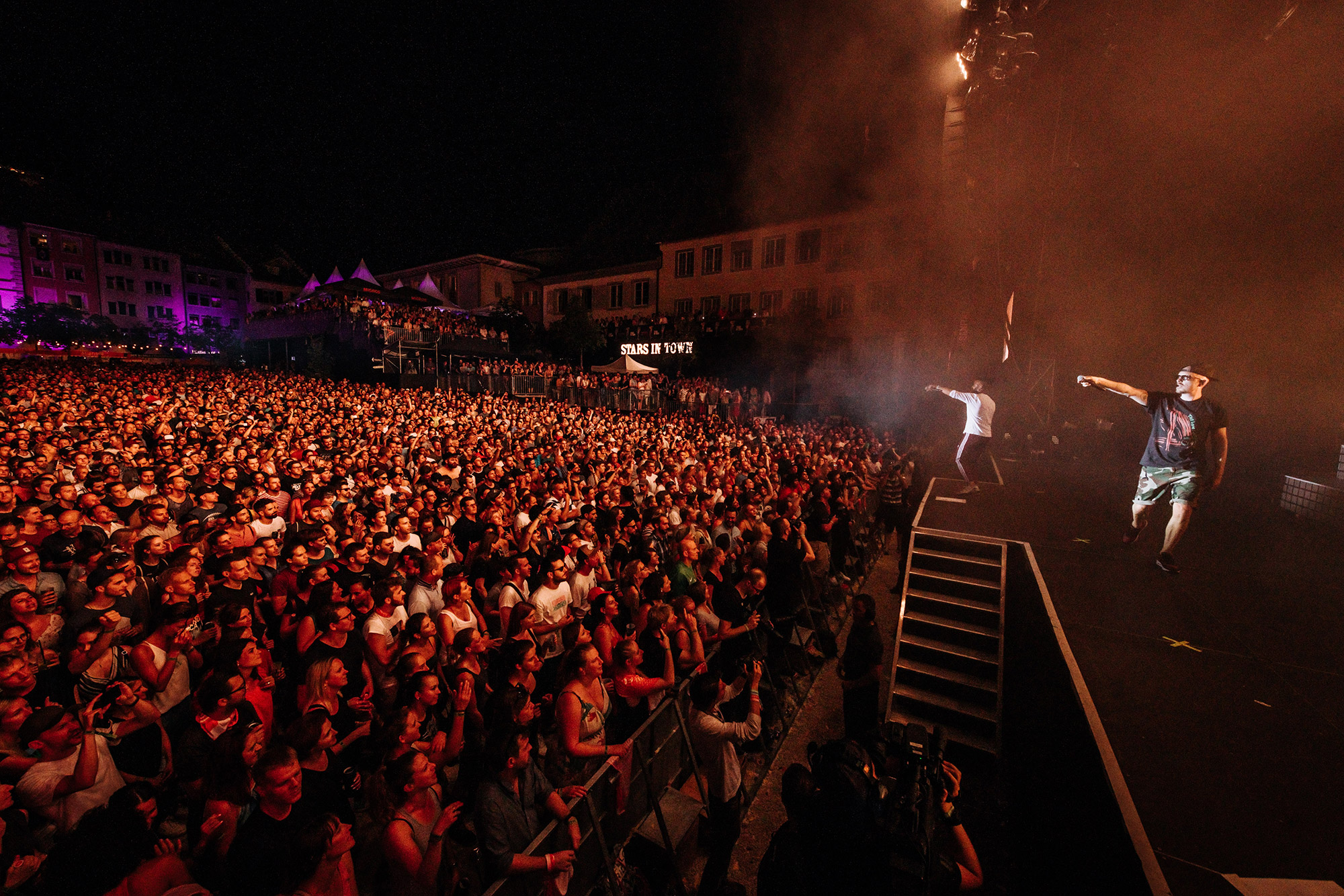 Auch 16 Jahre nach seinem Debüt-Album spricht Andres Andrekson alias Stress mit einem wunderschönen französischen Akzent Deutsch. Und wie schon zu Beginn seiner Karriere siezt er seine Fans noch immer. Egal ob er fragt: Haben Sie Lust zu tanzen? oder fordert Kommen Sie ein bisschen näher, er tut es in der Höflichkeitsform. In den letzten Jahren ist es etwas ruhiger um den Lausanner Rapper geworden. Doch kaum ist er wieder auf der Bühne, spürt man seine Energie wie eh und je. Auch seine Crew ist dieselbe geblieben. Noch immer singt Karolyn wunderschöne Vocals und MAM unterstützt ihn beim Rappen. Ohne die beiden wäre Stress nicht er selbst. Titel wie Rester Soi-Même, Elle oder die Umwelt-Hymne On n'a Qu'Une Terre haben nichts an Kraft verloren. Noch immer ist Stress einer der vielseitigsten Schweizer Rapper in diesem Land. Als erster Act am diesjährigen Stars in Town bekommt er sogar einen Moshpit vor der Bühne. Als Kreis-Koordinator hat er Colin auserwählt. Auf das Kommando Colin, Kreis! wird dieser zum Zentrum des Pits. Auch wenn sich der Rapper eher Auftritte in Dunkelheit gewöhnt ist, so schafft er es auch im Tageslicht die Stimmung richtig aufzuheizen.