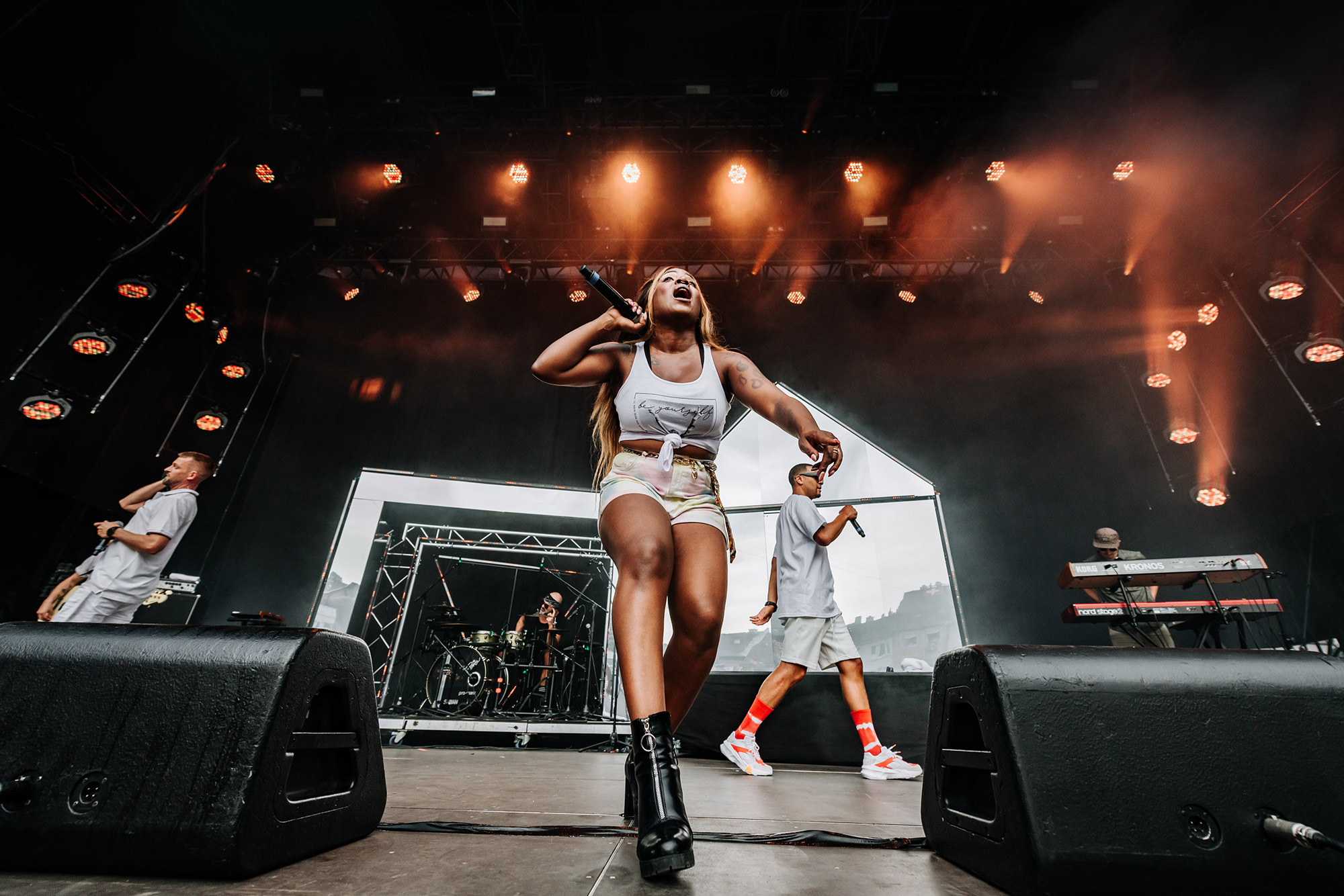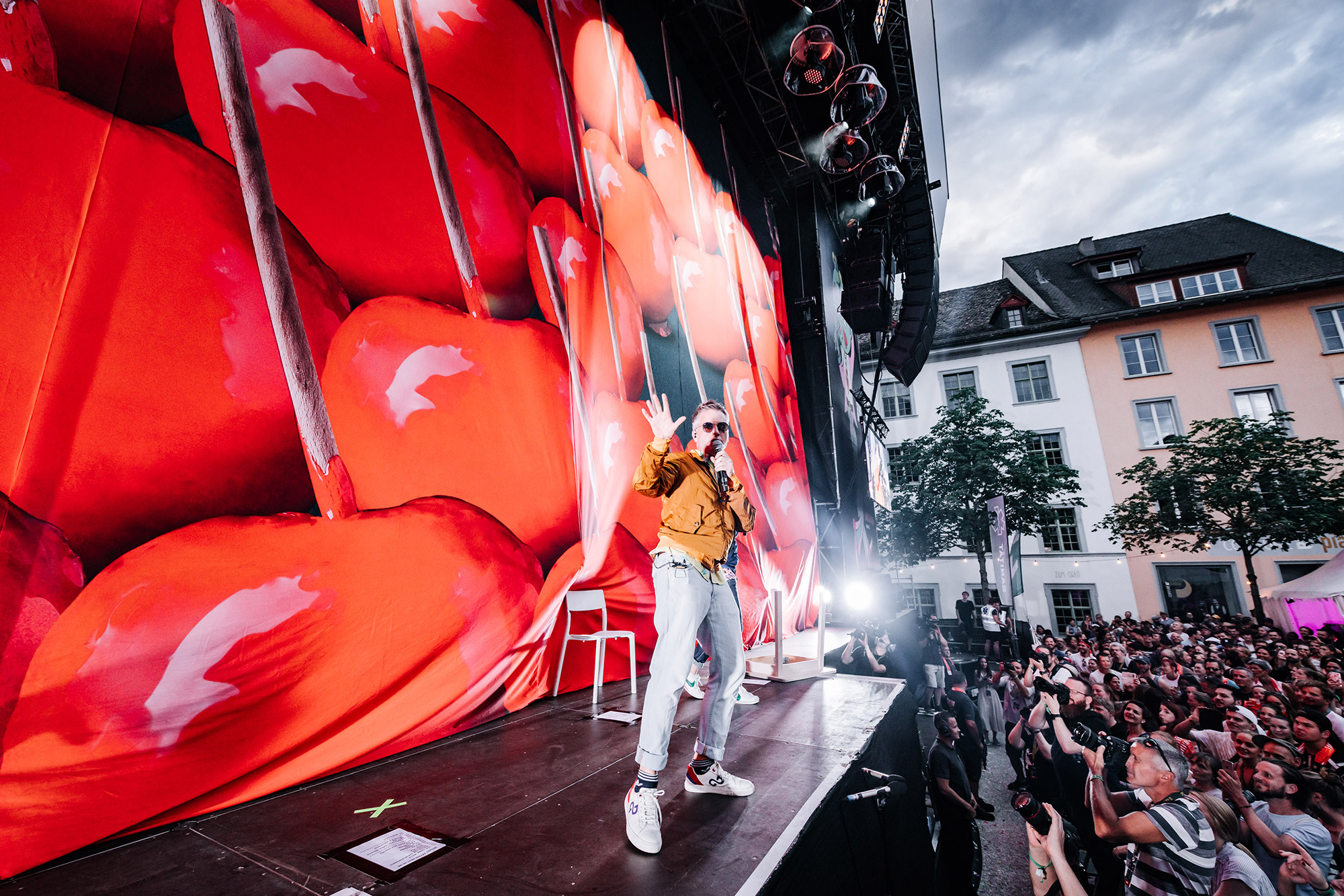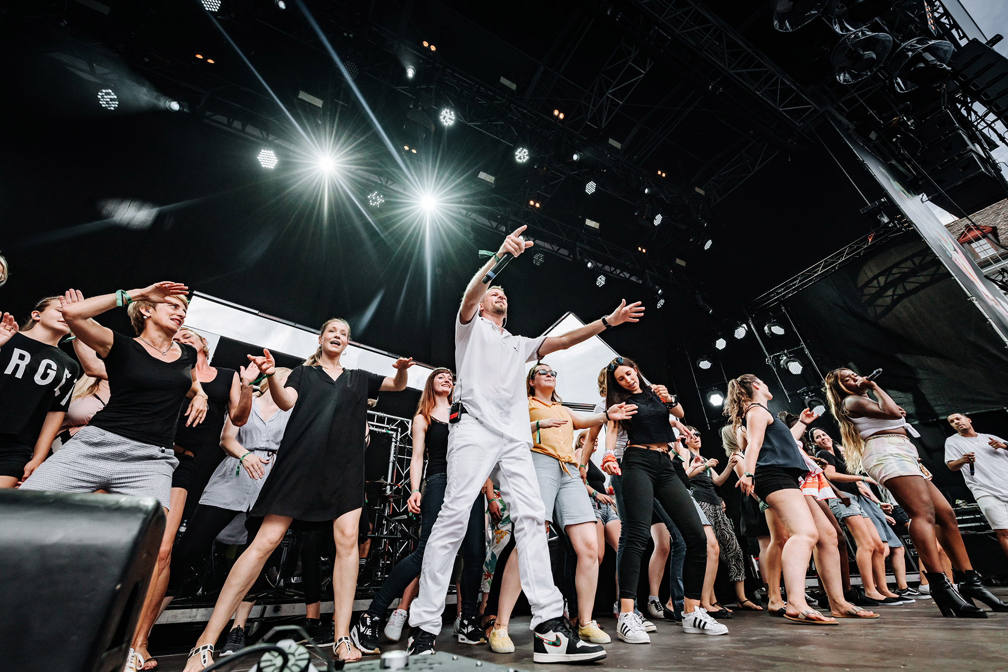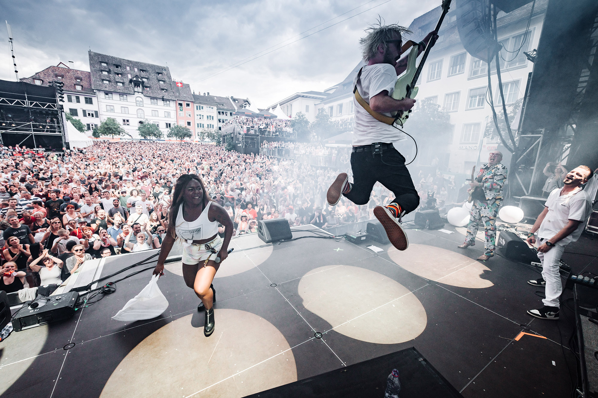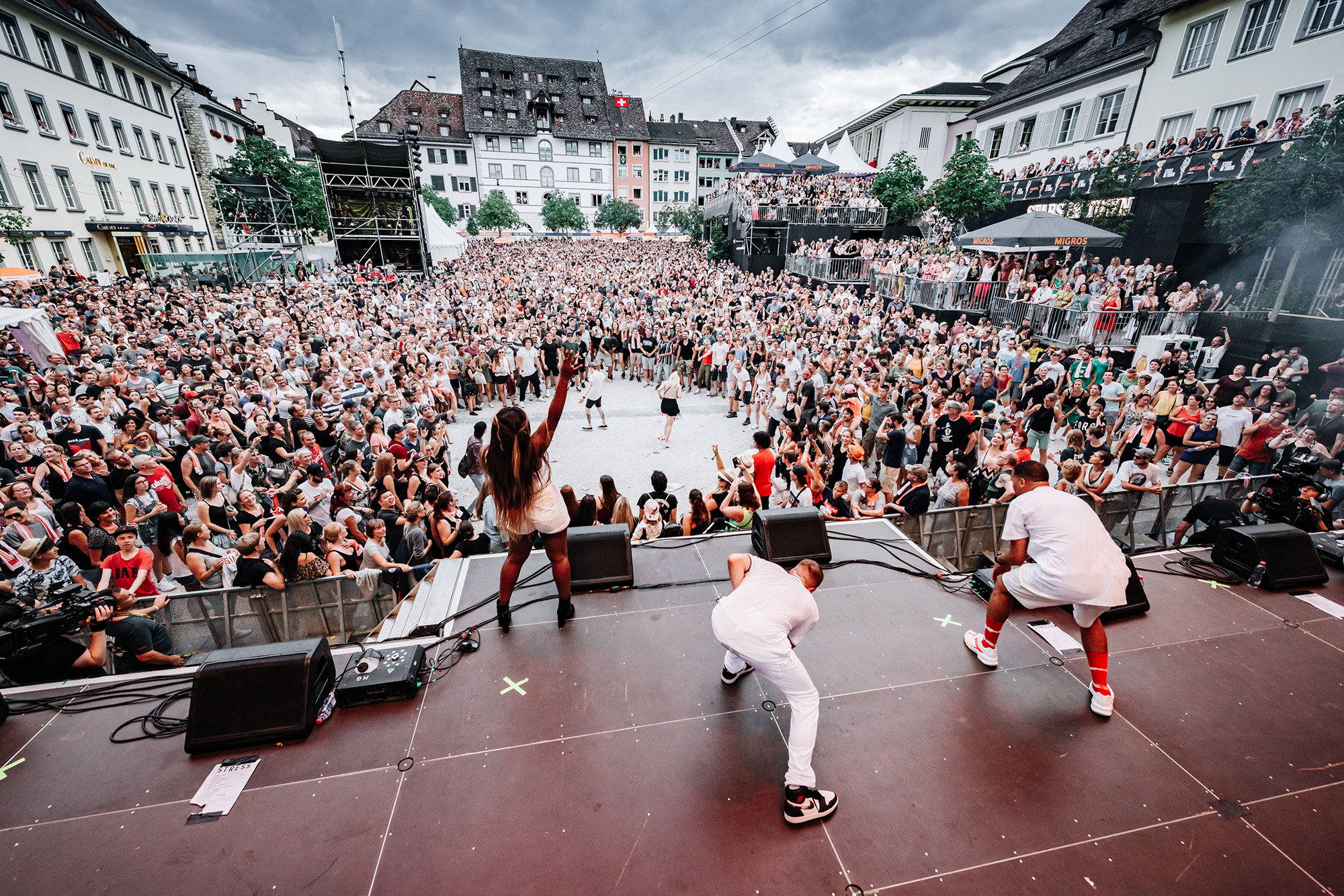 Auch 16 Jahre nach seinem Debüt-Album spricht Andres Andrekson alias Stress mit einem wunderschönen französischen Akzent Deutsch. Und wie schon zu Beginn seiner Karriere siezt er seine Fans noch immer. Egal ob er fragt: Haben Sie Lust zu tanzen? oder fordert Kommen Sie ein bisschen näher, er tut es in der Höflichkeitsform. In den letzten Jahren ist es etwas ruhiger um den Lausanner Rapper geworden. Doch kaum ist er wieder auf der Bühne, spürt man seine Energie wie eh und je. Auch seine Crew ist dieselbe geblieben. Noch immer singt Karolyn wunderschöne Vocals und MAM unterstützt ihn beim Rappen. Ohne die beiden wäre Stress nicht er selbst. Titel wie Rester Soi-Même, Elle oder die Umwelt-Hymne On n'a Qu'Une Terre haben nichts an Kraft verloren. Noch immer ist Stress einer der vielseitigsten Schweizer Rapper in diesem Land. Als erster Act am diesjährigen Stars in Town bekommt er sogar einen Moshpit vor der Bühne. Als Kreis-Koordinator hat er Colin auserwählt. Auf das Kommando Colin, Kreis! wird dieser zum Zentrum des Pits. Auch wenn sich der Rapper eher Auftritte in Dunkelheit gewöhnt ist, so schafft er es auch im Tageslicht die Stimmung richtig aufzuheizen.